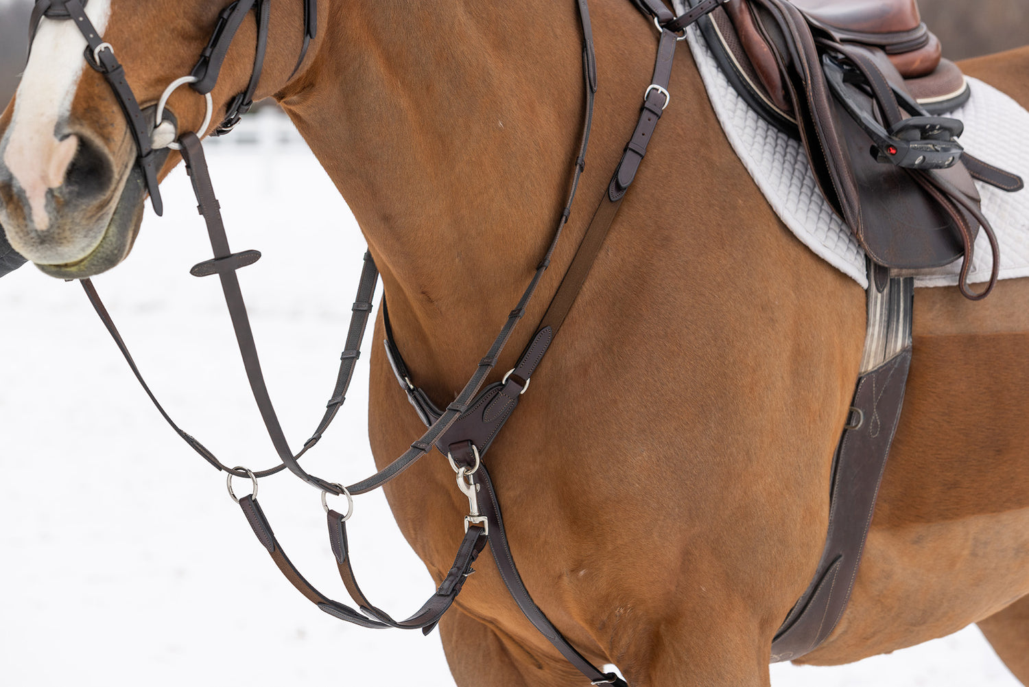 The breastplate is fully adjustable and the martingale is removable.