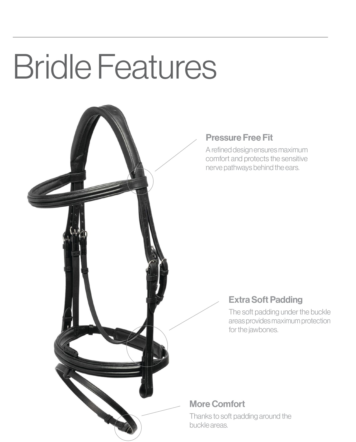 Each Menetics bridle features key touchstone design points including: